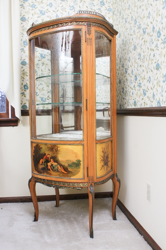 Vintage wall wood display glass front door cabinet shelf 11.75 x 13.5 x 4. Vintage brass glass curio display cabinet 6 sides 3 shelf table top collectibles stylish curio cabinet mounted on brass frame and covered with glass. If space is a concern in your home, get a unit that fits snugly into a corner. This glass cabinet is ideal for displaying your merchandise. Suitable for residential and commercial premises.